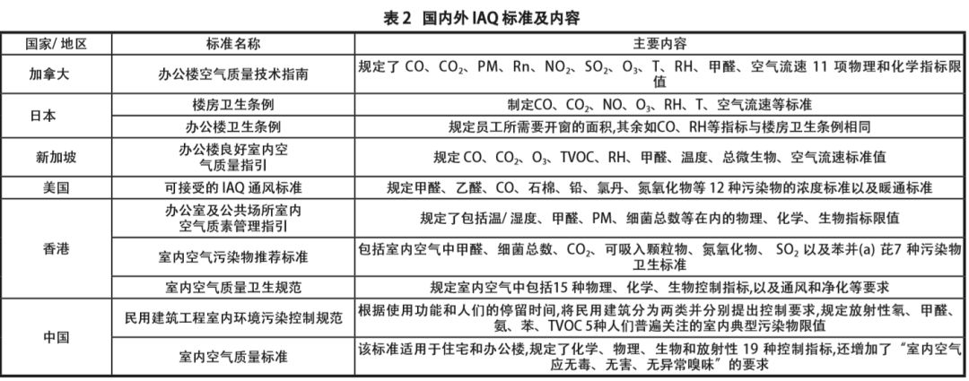相比其他国家 IAQ 标准/导则,我国 GB 18883—2002《室内空气质量标 准》规定空气指标最多,规定了包括化学、物理、生物和放射性指标 19 项限值。目前我国的建筑工程设计中,除对该标准中温度、湿度、空气流速、新风量等4项物理指标有明确的设计控制方法,暂时没有对其他室内污染性指标控制的相关规范。